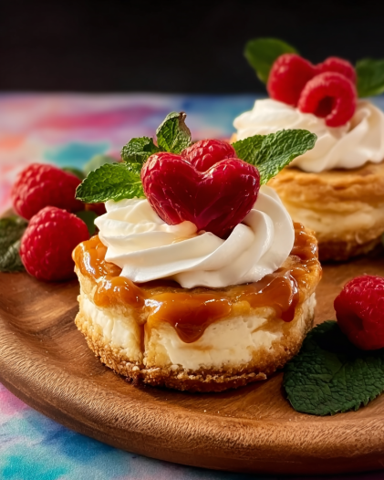 Each little cheesecake is a delightful mix of textures: smooth, velvety filling, crisp pastry layers, juicy apple chunks, and a drizzle of golden caramel that ties it all together. Best of all, they’re simple to make, beautiful to serve, and impossible to resist.