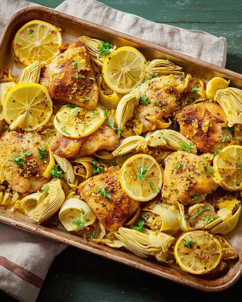 This Sheet Pan Lemon Artichoke Chicken Thighs dish brings bright Mediterranean flavors right to your dinner table. The juicy chicken thighs, roasted to golden perfection, soak up the tangy zest …