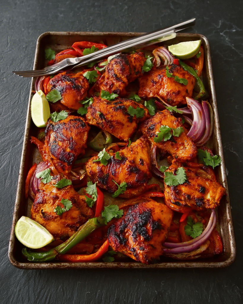 This Tailgate Tandoori Chicken dish delivers bold, crowd-pleasing flavor with ease. The spice-rich marinade clings to juicy chicken pieces, which roast atop vibrant sweet potato rounds and colorful strips of …