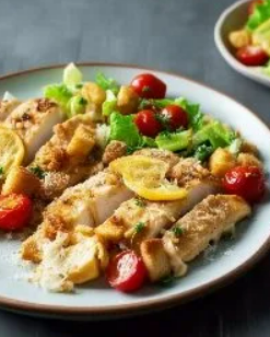 Serve the Baked Caesar Chicken on warm plates, letting the golden‑topped Parmesan crust glisten under soft lighting. The creamy Caesar dressing coating the chicken breast keeps it tender and juicy, …