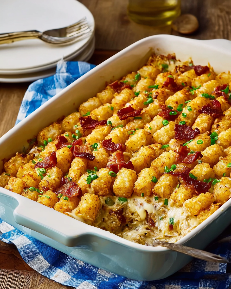 Over the decades, variations of tater tot casseroles have emerged, featuring ground beef, vegetables, or breakfast ingredients. The Chicken Bacon Ranch version is a more modern take, combining classic comfort with the bold, zesty flavors of ranch seasoning and the irresistible addition of bacon. This updated twist honors the tradition of casseroles while appealing to contemporary tastes.