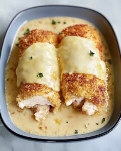 - Crispy and Golden on the Outside, Tender on the Inside – The lightly breaded chicken stays juicy, while the cheese melts beautifully inside.