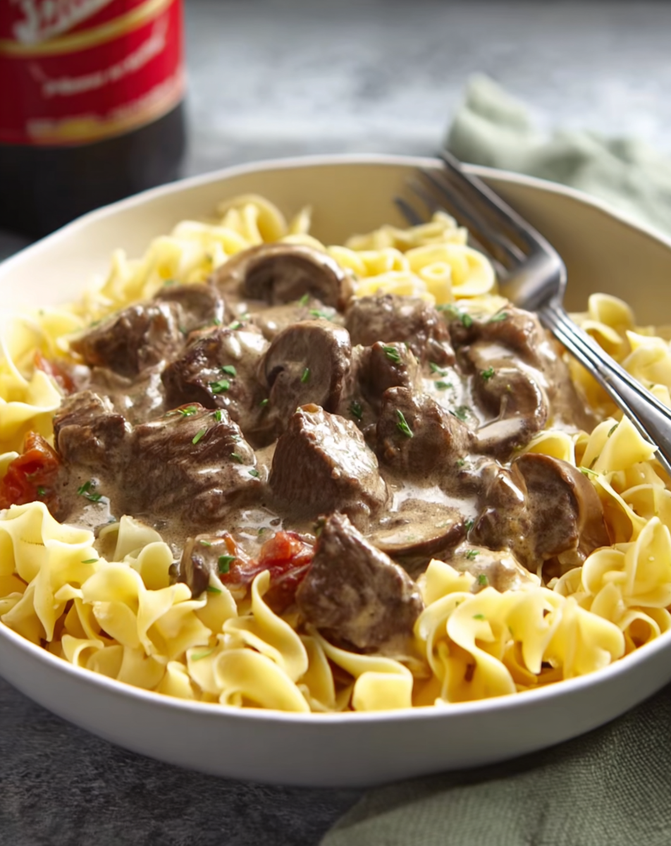 Creamy Beef Tips with Egg Noodles: A Luxurious Comfort Dish for Any Night