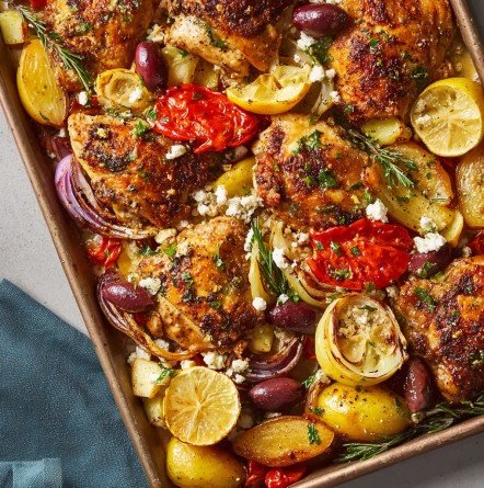 Flexible for Any Occasion: From a casual weeknight dinner to a more festive meal with guests, this Mediterranean chicken sheet pan dinner fits every occasion. It’s also great for meal prepping and can easily be doubled to serve a crowd.