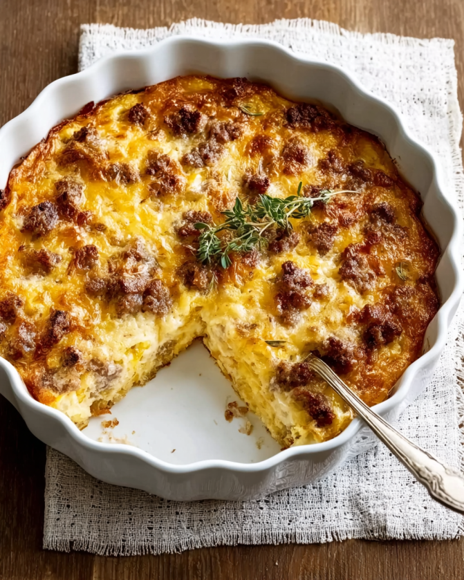 The Sausage and Hash Brown Breakfast Casserole is a timeless, crowd-pleasing dish that’s perfect for any breakfast or brunch occasion. With its rich combination of savory sausage, crispy hash browns, and melted cheddar cheese, it’s sure to satisfy even the heartiest appetites. This casserole is not only easy to make, but it can also be customized to suit various tastes and dietary preferences, making it an incredibly versatile meal for all to enjoy.