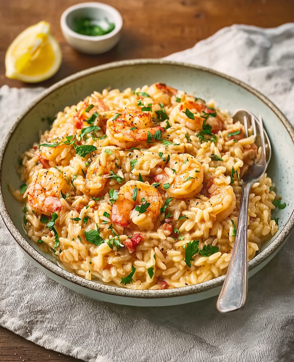• Hearty Yet Light: While this dish is indulgent, it strikes a balance between being hearty enough to feel like a full meal while not feeling too heavy. The shrimp provide protein, while the orzo offers a comforting carb base.