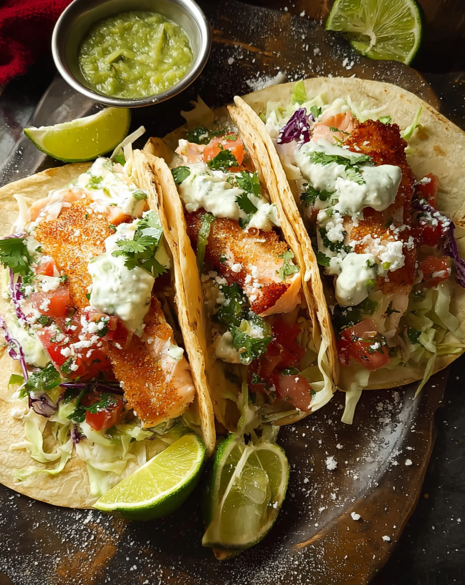 Trout Tacos are incredibly versatile and can be customized to suit different preferences and occasions. For a light lunch, they can be served with a side of mixed greens or a simple cucumber salad. For dinner, pair them with rice, black beans, or roasted vegetables for a heartier meal. Adding extra garnishes such as pickled onions, avocado slices, or shredded cheese can introduce new layers of flavor and texture. A squeeze of fresh lime right before serving brightens the overall taste, while a sprinkle of chili flakes can add an extra kick for spice lovers. These tacos also pair beautifully with refreshing beverages like sparkling water with lime, light beer, or margaritas for a complete dining experience.
